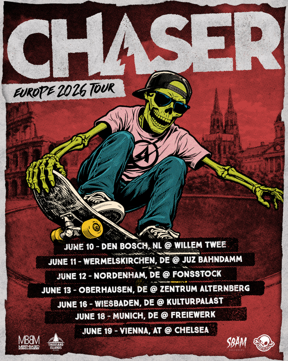 Tue 27 Jan 2026Southern California’s own CHASER continue to prove why they are one of punk rock’s most uplifting and unstoppable live acts. Rooted in melodic punk with a relentlessly positive edge, the band—Mike LeDonne (vocals), Jesse Stopnitzky (bass/vocals), Bill Hockmuth (guitar) and Davey Guy (drums)—are four close friends united by their love for the genre and a desire to make a genuine impact through their music.